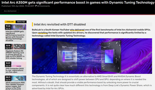 DTT (Dynamic Tuning Technology) 이슈는 ARC 제품이 탑재된 갤럭시북 등의 제품에서 기본으로 설치되는 DTT 프로그램에 의한 성능제한으로 CPU/GPU가 서로 전력제한이 공유되어있어 서로 사용전력 합이 30w로 정해져 있는 문제인데, 해결법이 보다 간단하지만 DTT로 인한 성능 저하를 정확히 명시하지 않아 유저들이 알아낸 후에 다시 문제가 되었습니다. 모바일 제품군들은 휴대해야 하므로 배터리 수명과 배터리 유지가 중요하지만, 배터리 충전기를 쭉 연결하는데도 DTT가 계속 활성화 되어있어 저하된 성능으로 강제 언더클럭을 당했는데, 최근에 크게 문제가 되었던 삼성 GOS문제와도 같습니다.
