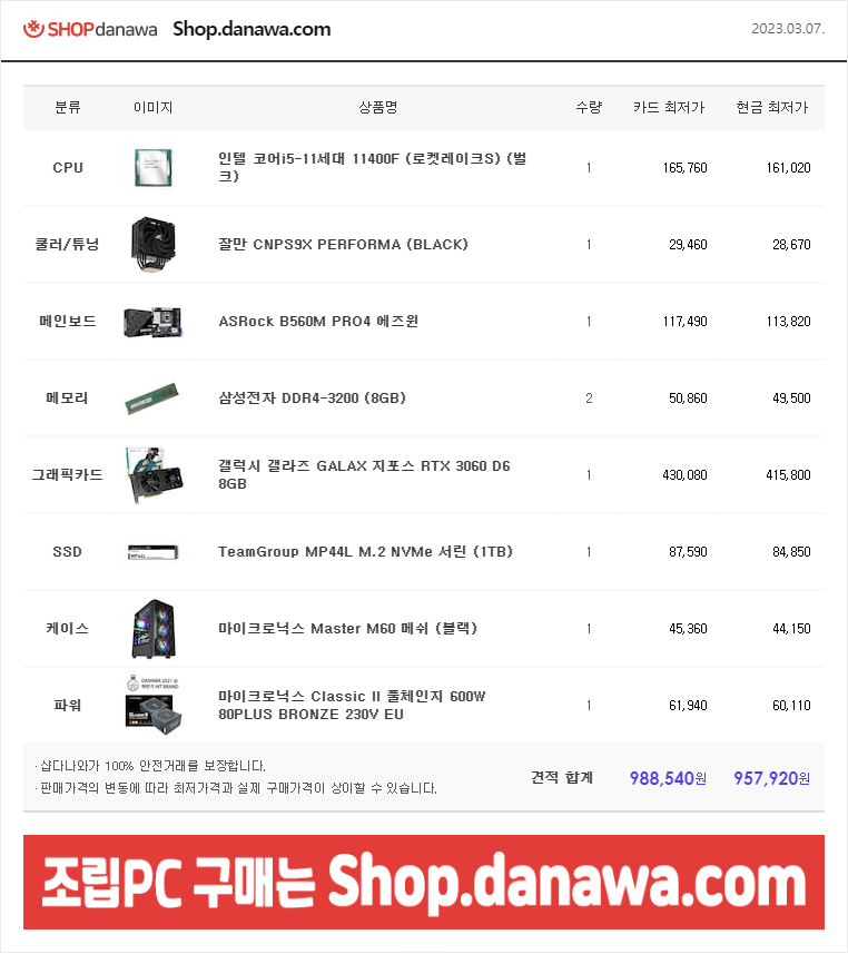| 초보자 쉽게 컴퓨터 견적 맞추기 (0) | 2023.03.04 |